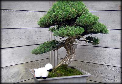 After all those giant redwood trees and sequoia trees, at last a tree my size! A bonsai in the Japenese garden at Huntington Library. |